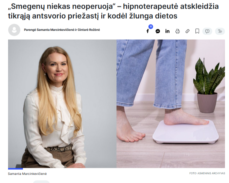„Smegenų niekas neoperuoja“ – hipnoterapeutė atskleidžia tikrąją antsvorio priežastį ir kodėl žlunga dietos